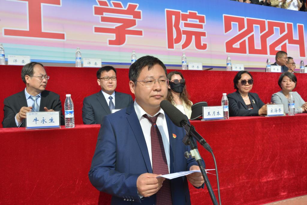 4月18日上午,我校2024年田径运动会在1号体育场隆重开幕。校党委书记任中普,校长沈记全,校党委副书记牛瑞庆,副校长万鹏杰、彭仁海、闫春岭,田径运动会组委会、相关职能部门、二级学院相关负责人及近万名师生现场观看了开幕式,副校长彭仁海主持开幕式。