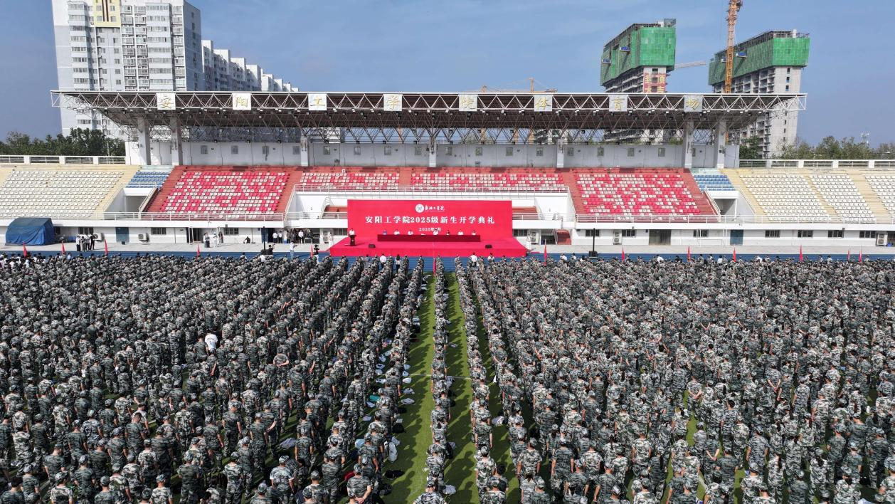 9月15日上午,我校2025级新生开学典礼在体育场举行。校领导沈记全、牛瑞庆、陈书章、王红艳、彭仁海、赵卫兵、闫春岭出席。学校相关职能部门负责人,各学院党政负责人、副书记、团委书记、新生辅导员及全体2025级新生参加。